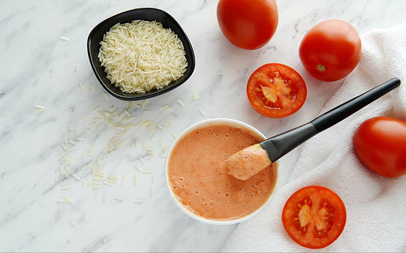 • Chuẩn bị: 2 thìa cà phê tinh bột yến mạch, 2 thìa nước ép cà chua.