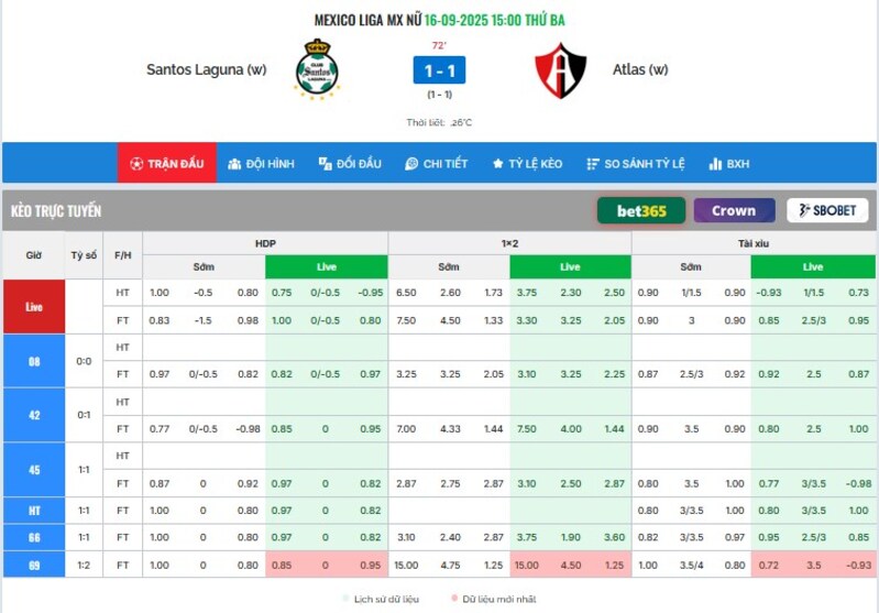 Tỷ lệ kèo update real-time