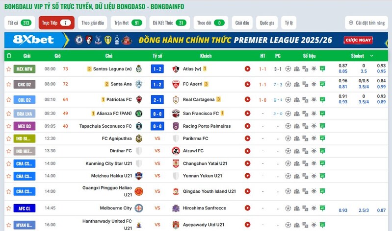 Một điểm mà mình đánh giá rất cao là Bongdainfo luôn cập nhật tỷ lệ kèo theo thời gian thực từ các nhà cái uy tín như SBOBET, 188BET, 18BET, MACAUSLOT, M88… Ngay khi có biến động, trang hiển thị thay đổi tức thì, giúp anh em dễ dàng điều chỉnh lựa chọn.