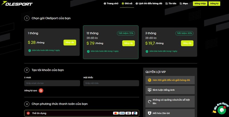 Thanh toán linh hoạt với nhiều gói cước giá rẻ trên Ole Sport