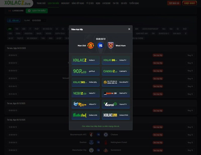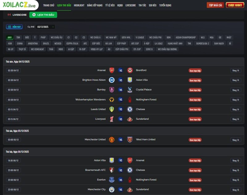 Xoi Lac TV là một trong những nền tảng hiếm hoi tại Việt Nam cập nhật lịch thi đấu toàn bộ giải Ngoại hạng Anh, theo từng vòng, từng trận, từng đội, từng thời điểm chính xác. Mình còn nhớ có lần chờ xem M.U đấu Tottenham theo lịch cũ, trận bị dời sang ngày hôm sau. Trong khi nhiều trang vẫn chưa sửa, Xoilac TV cập nhật chỉ sau chưa đầy 1 giờ, đúng là cứu cánh cho fan chân chính.