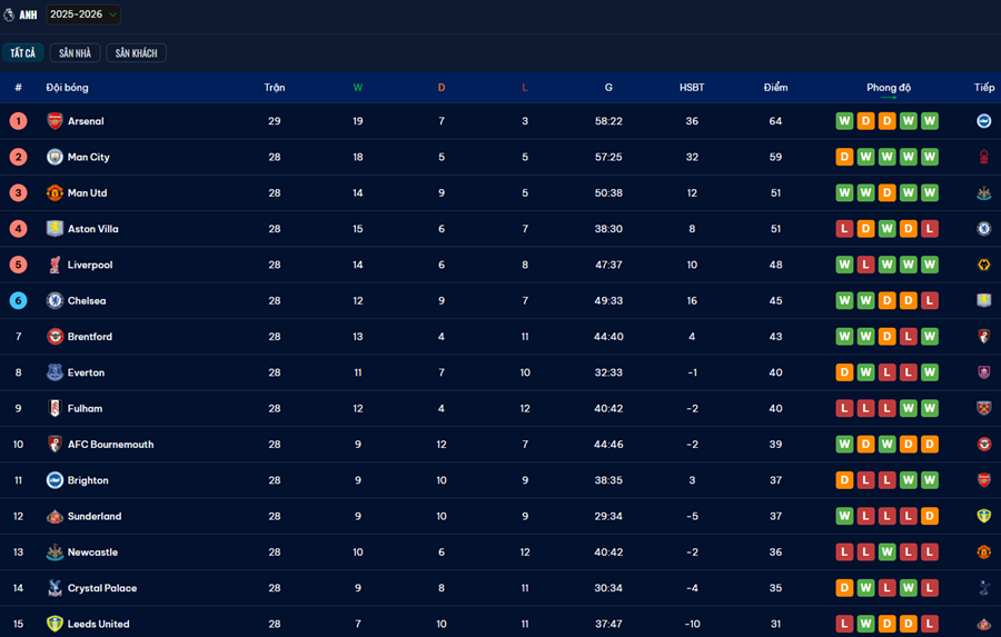 Nếu xem bóng đá là cảm xúc, thì bảng xếp hạng tại đây chính là bản đồ chiến lược của cả mùa giải. Và với fan của Premier League, đó là thứ không thể thiếu mỗi tuần.