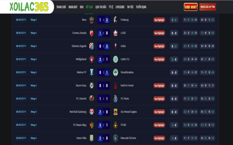 Xoilac Tivi cho phép người dùng xem lịch thi đấu, ket qua bong da, highlight và bảng xếp hạng chỉ trong một giao diện duy nhất. Mọi thông tin được sắp xếp gọn gàng, khoa học giúp khán giả tiết kiệm thời gian tìm kiếm. Việc tích hợp nhiều dữ liệu trong cùng một trang không chỉ tiện lợi mà còn mang lại cảm giác liền mạch khi theo dõi.