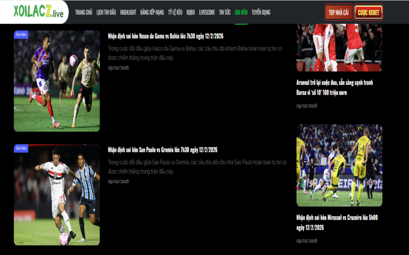 Khi truy cập vào Xoilac Live, người dùng có thể dễ dàng tiếp cận kèo nhà cái của hầu hết các trận đấu đang và sắp diễn ra. Bên cạnh đó là hệ thống bài nhận định, phân tích trước trận được trình bày mạch lạc, có chiều sâu, giúp người đọc hiểu rõ bản chất từng kèo đấu thay vì chỉ nhìn vào con số.